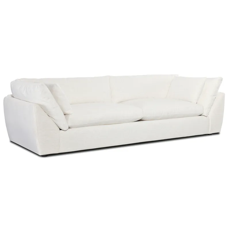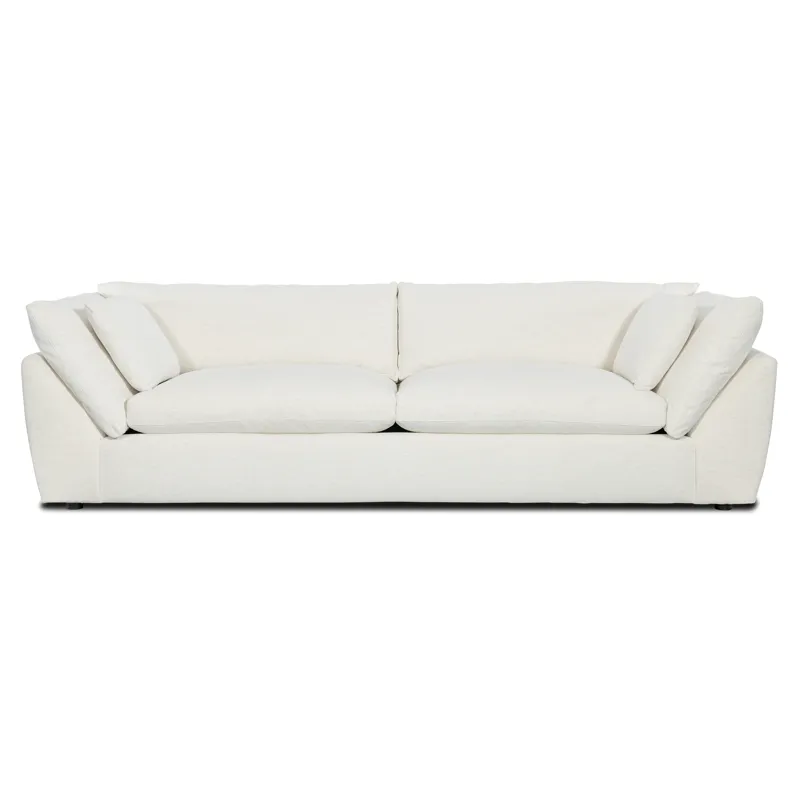 The Aurora 9 ft. 2 over 2 Sofa offers deep seating and graceful style with a modern silhouette. Wrapped in soft fabric, its perfect for lounging in a spacious, upscale living room.