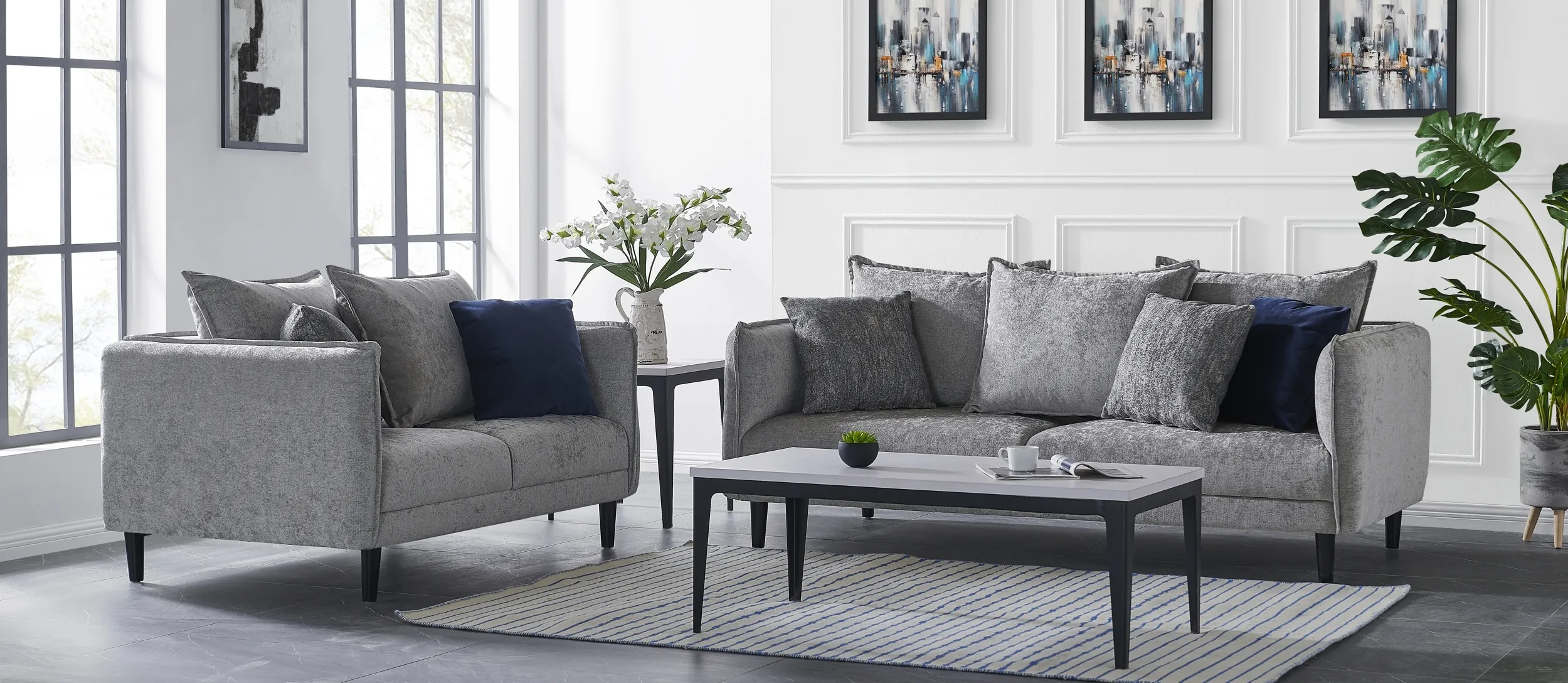 Features Two Cushion, Upholstered