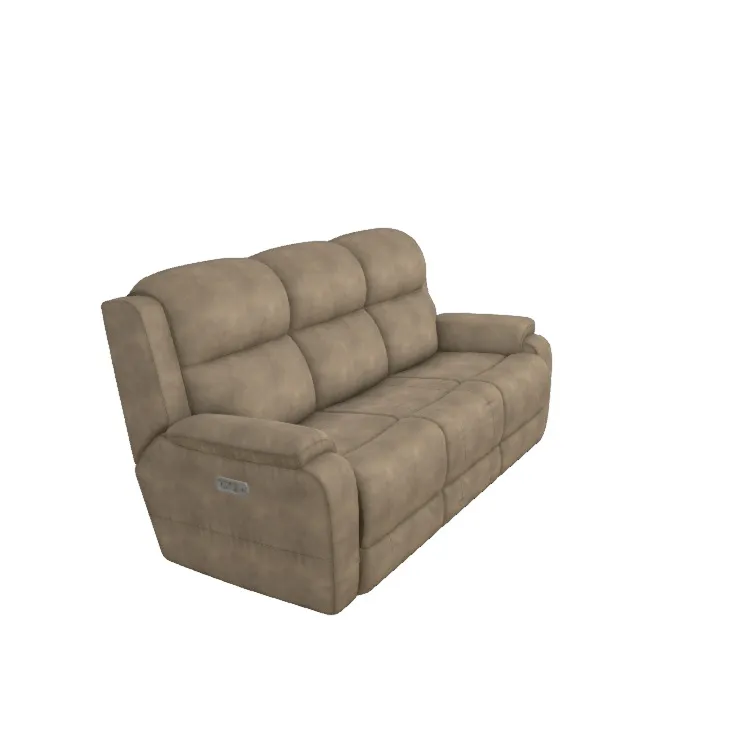 The Dorian Power Reclining Sofa with Headrest and Lumbar has a large profile, abundant cushioning and a casual vibe. Billowy wrap-over pub-style backs and bucket chaise seats provide power-adjustable comfort, ideal for movie nights and relaxing.