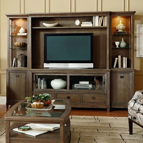 Park Studio entertainment wall unit will be the focal point of any room. The base has an adjustable shelf for lots of storage and an electrical outlet for easy hookups.