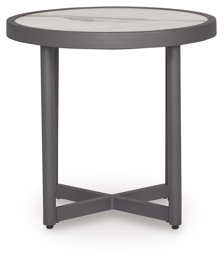 A refined marriage of style and durability, this outdoor end table adds contemporary flair to your porch or patio. Shades of gray and a luxe marble look on top lend a versatile, neutral appeal. And this table is built to last, thanks to its rust-resistant aluminum construction.